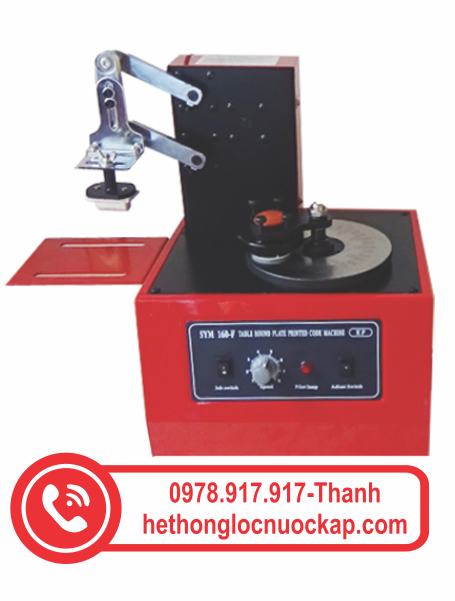 Khi máy hoạt động sẽ có 01 tăm bông chấm vào mực in đã pha sãn và mực in sẽ được gạt vào đĩa Inox đã có khắc sẵn ngày tháng năm --> tăm bông sẽ chấm vào đĩa Inox và chấm vào nơi sản phẩm cần in Ngày Tháng Năm.